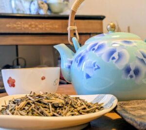 足湯のヨモギを袋詰め ヨモギの香りに癒やされます🌿